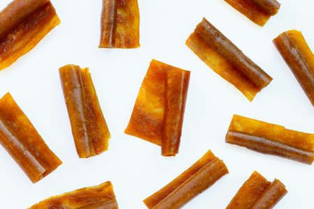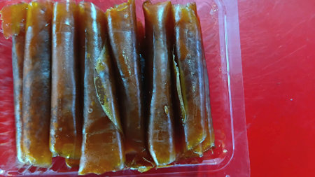 Mango sheet ( dried mango paste ).Thai call Mamuang kuan .Mamuang kuan is a dessert that used the old method of preparation and keep long time.