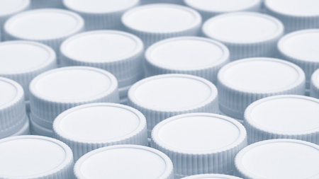 Colorful plastic bottle caps. Studio shot. Plastic waste.