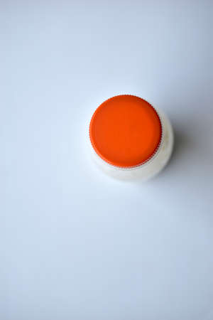 Orange water bottle cap and white background