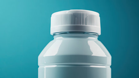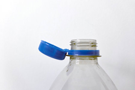 A close-up of a transparent plastic bottle with an open blue cap against a white background, its recyclable nature. the image serves well for topics on sustainability, recycling, and environmental awareness.