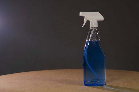 Blue Glass Cleaner Spray Spraying Dispersion Pulverizer. On a dark background