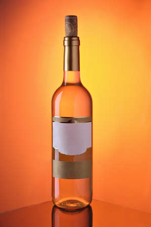 Wine bottle with white label on a yellow background. front view. minimal concept. 3D rendering illustration