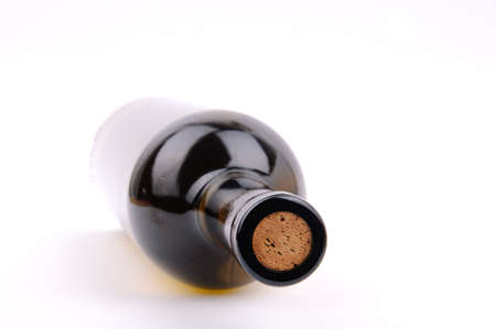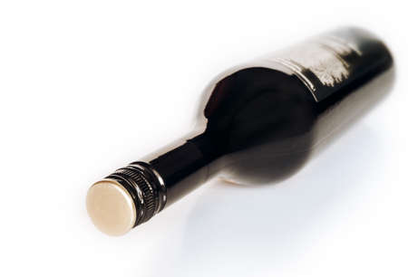 A tapered wine bottle with a plain backdrop, offering space for labels or text.