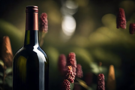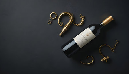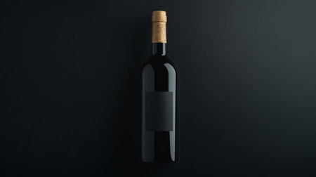 Dark wine bottle with cork and label mockup, set on a black background with soft lighting, giving a luxurious, premium feel