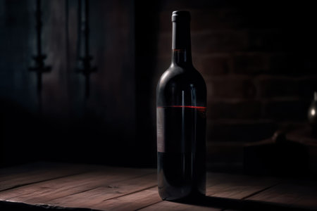 Bottle of red wine on a wooden table in a dark room AI Generated