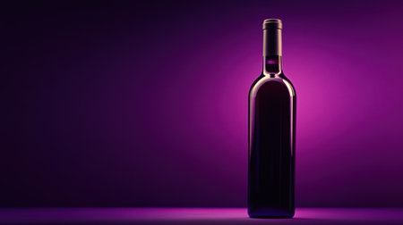 A bottle of rare, aged wine, isolated against a deep purple background, with light reflecting off the glass surface.