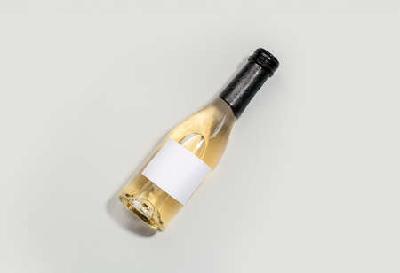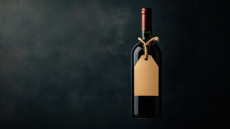 Elegant wine bottle with a blank label suspended against a dark background, perfect for branding or promotional designs.