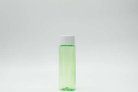 Green cosmetic bottle isolated on white background