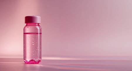 AI Generated. Pink water bottle with condensation on a pink background