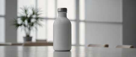 AI Generated. A sleek and distinctive white canteen mockup bottle presented on a minimalistic white surface