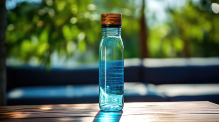 This image features a clear glass bottle filled with sparkling water, illustrating purity and refreshment. Perfect for wellness, lifestyle, and beverage themes.