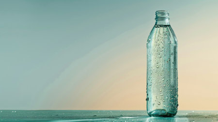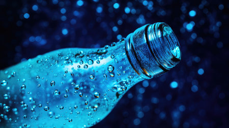 A close-up image showcasing water droplets on the surface of a bottle, highlighting freshness and clarity, perfect for various beverage-related themes.