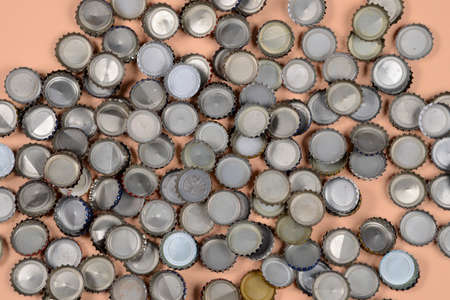 Pile of used alluminum beer bottle corks for metal recycling,garbage trash recycle