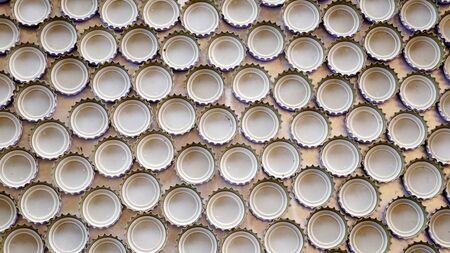 Beer bottle caps in a pile