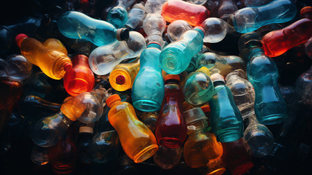 Crumpled plastic bottles of mineral water. Plastic waste blured background with copy spase