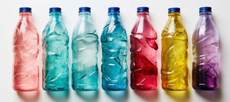 Collection of discarded plastic water bottles on white background, environmental pollution concept