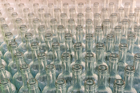 Many empty bottles of wine in a row, for background. Bottles in Row.