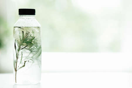 Full of pure fresh water bottle in a coffee cafe. Drink concept.