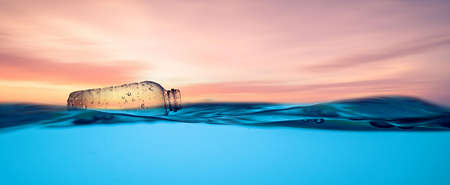 plastic bottles floating in the sea Plastic waste floats in the water. The concept of plastic waste and pollution and the concept of change.