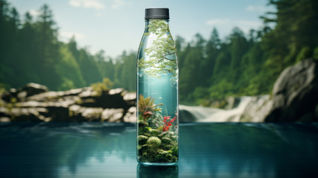 This artistic image features a blue plastic bottle filled with vibrant green leaves, symbolizing the importance of environmental conservation and sustainability.