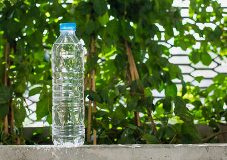 Drinking water bottle in garden,selective focus.