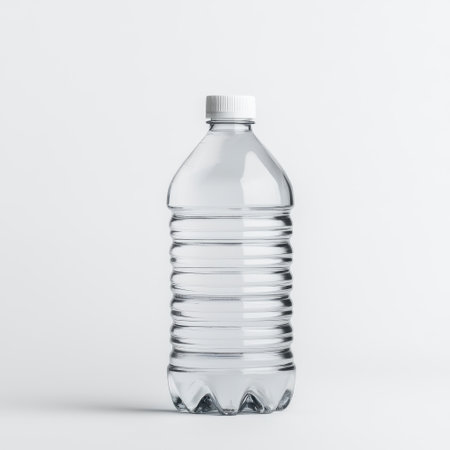 close up of a plastic bottle on white background