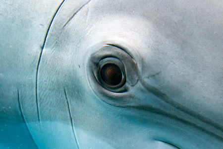 tursiop dolphin portrait detail of eye while looking at you from ocean