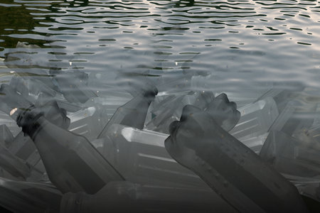 Plastic bottles on the lake. Plastic pollution