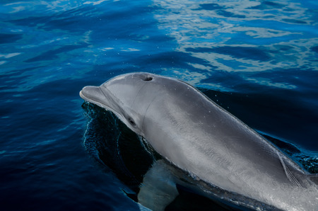 Wild dolphin swimming in turquoise waters of Indian Ocean