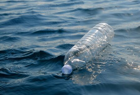 Plastic bottle floating in the ocean. Concept of pollution.