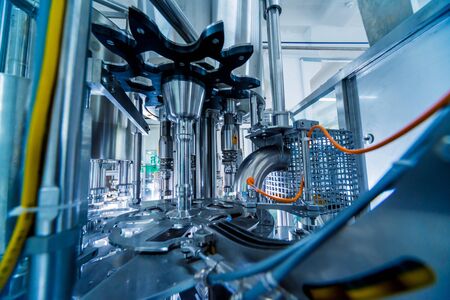 Production line for drinking water, fruit juice and liquid medicine in the factory. Sterilized and sterilized bottle filling machines