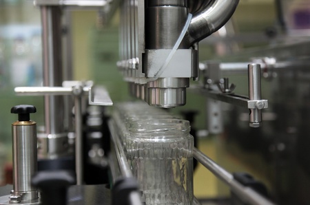 medicine pills jar flask Factory workspace machine robot production mechanic conveyor photo close view professional studios light