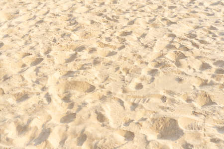 Sand texture background on the beach. Light beige sea sand texture pattern, sandy beach background.