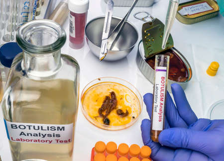 Samples contaminated by Clostridium botulinum toxin that causes botulism in humans, laboratory research, conceptual image