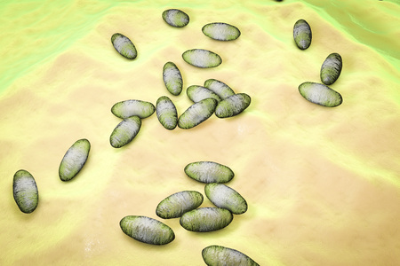 Plague bacteria Yersinia pestis, 3D illustration. Gram-negative bacteria with bipolar staining which cause plague infection