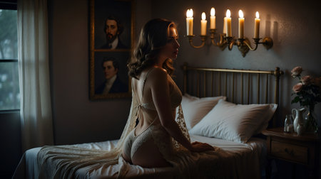 Candlelit seduction woman in sheer black lingerie surrounded by soft flickering candlelight the lighting enhancing