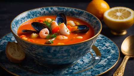 Famous French dish, bouillabaise seafood soup