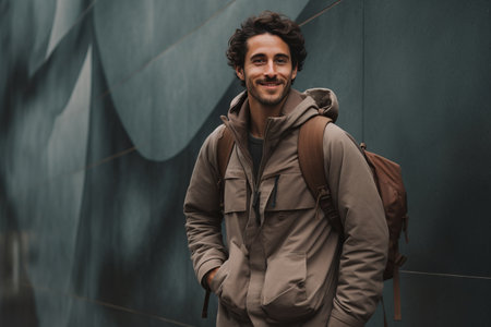 Smiling man with backpack enjoying outdoor adventure in nature