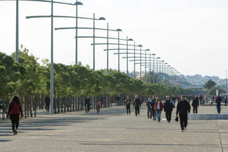 THESSALONIKI, GREECE - NOVEMBER 1: People are enjoying the sunny weather near seaside on November 1, 2015 in Thessaloniki.