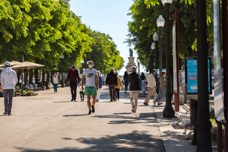 Tarragona, Spain: 2020 September 27: Sunny day in Rambla Nueva street of Tarragona in Spain, in the summer of 2020.