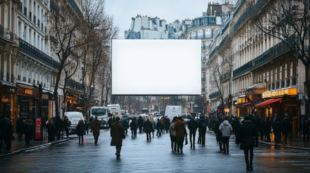 Paris, France April 20 2022: Panoramic view of the Boulevard Haussmann on a sunny day.