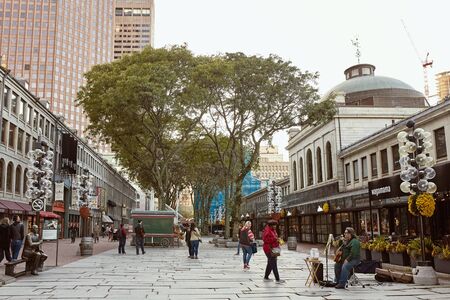 Boston, Massachusetts - October 4th, 2019: People strolling through Faneuil Hall Marketplace on a Fall day in downtown Boston