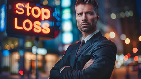 Sign “stop loss†and investor or businessman or trader with stock market exchange background