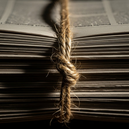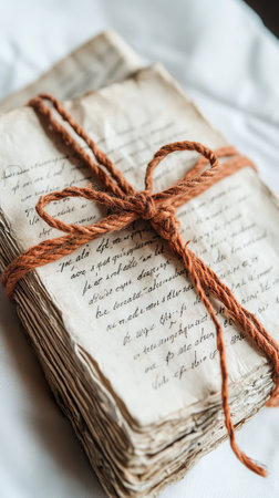 Vintage book pages tied with twine evoke a sense of nostalgia and romance.