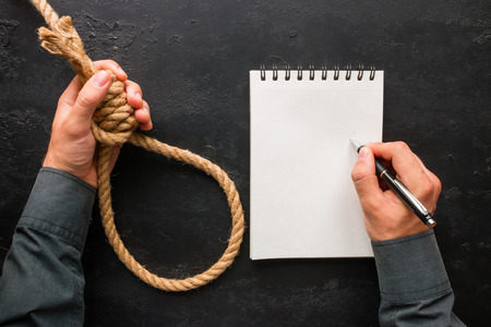 Hands tied with a rope, on a black background. Tied hands are holding a note with the inscription. Concept: message, slavery, addiction, message