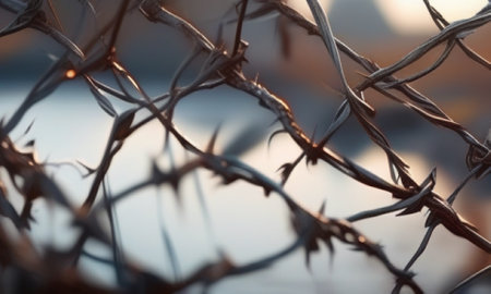 With blurry barbed wire rod fence. Created with Generative AI technology