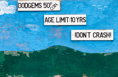 Old worn wooden advertisement board for funfair ride