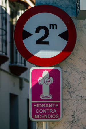 Carmona Spain July 18, 2021 Street sign or road sign, erected at the side of or above roads to provide information to road user in the downtown area of Carmona