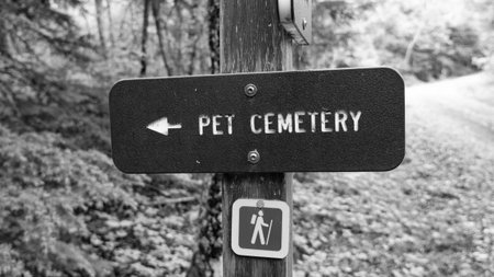 Direction sign to pet cemetery and for touristic trail at the forest area with nobody outdoor