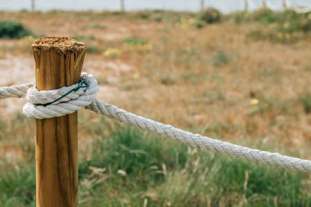 close-up of rope tied to wooden post